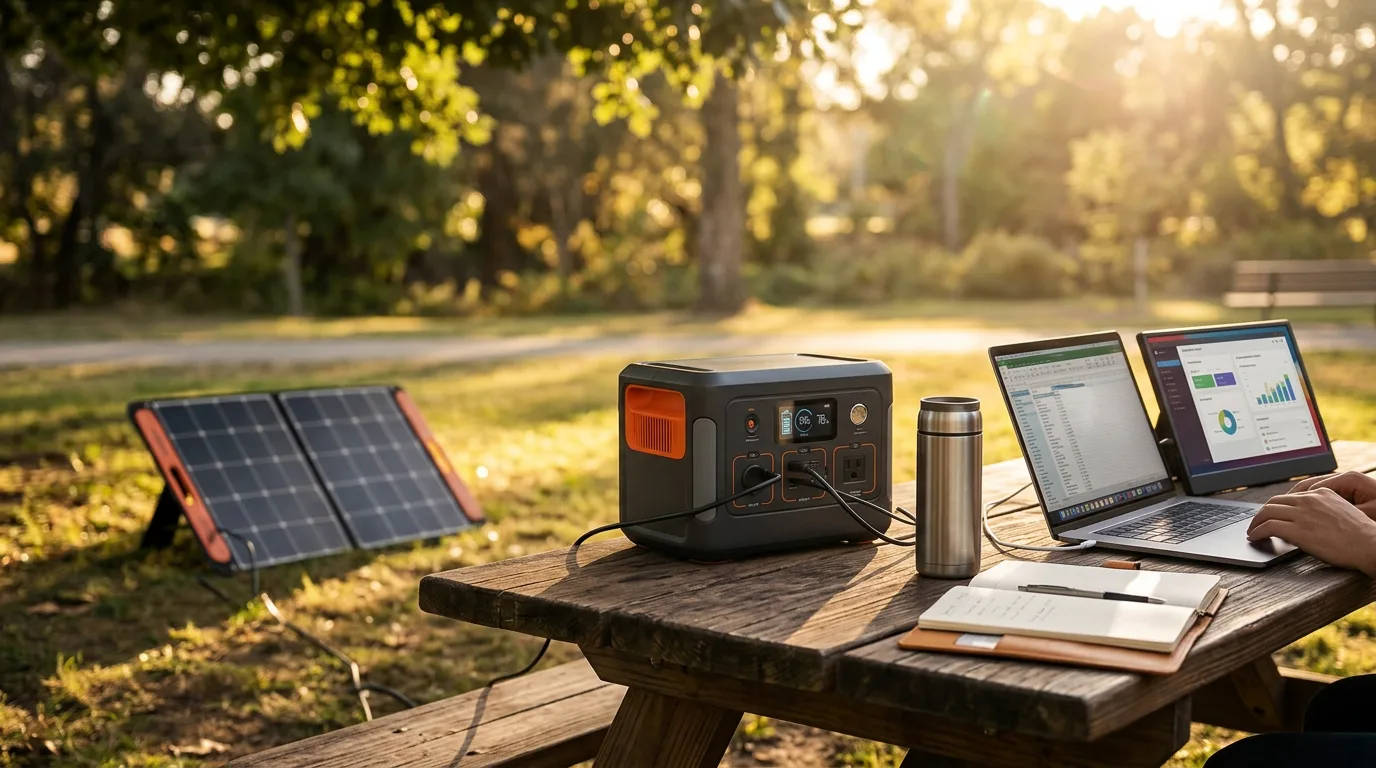 Remote work untethered you from the office. A solar generator untethers you from the wall outlet. A laptop that dies at 3 PM in a park, a Zoom call that drops because your hotspot ran out of battery, a monitor that cannot plug in at a campsite — these are solvable problems. The right compact generator keeps your workstation running for a full day anywhere with zero noise and no extension cord to the nearest cafe.